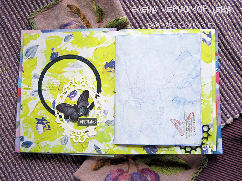 Артбук - крутая штука для проветривания мозгов. В голове полный хаос и паника перед воплощением в жизнь серьезного решения. Книга раскрывается сама собой, краски и штампы просто прыгают в руки, картинки из запасов веером выпадают из файла. 15 минут арттерапии и ... наступает просветление.