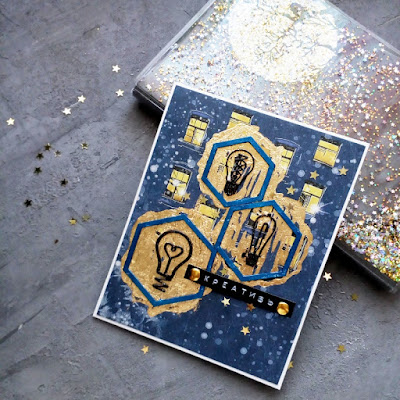 Лампочки из чипборда покрыты двойным эмбоссингом - сначала черной пудрой, а затем прозрачной с глиттером.