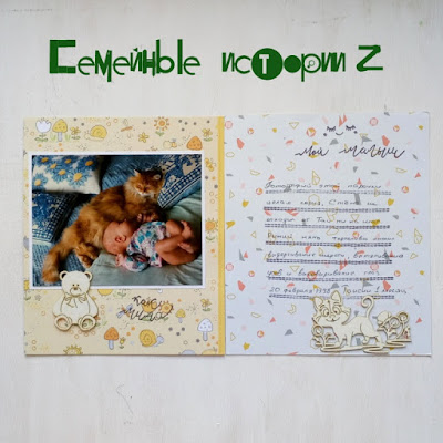 Тогда же решила обязательно сделать такой альбом с историями о дочери.Ну, кто еще в нашей маленькой семейке из 2 человек передаст на память ей (и будущим внукам) простые повседневные истории? И собрала стопу фотографий из альбомов (оригиналы), и странички разрезала, и перекладывала их туда-сюда год, но все как-то не складывалось.
